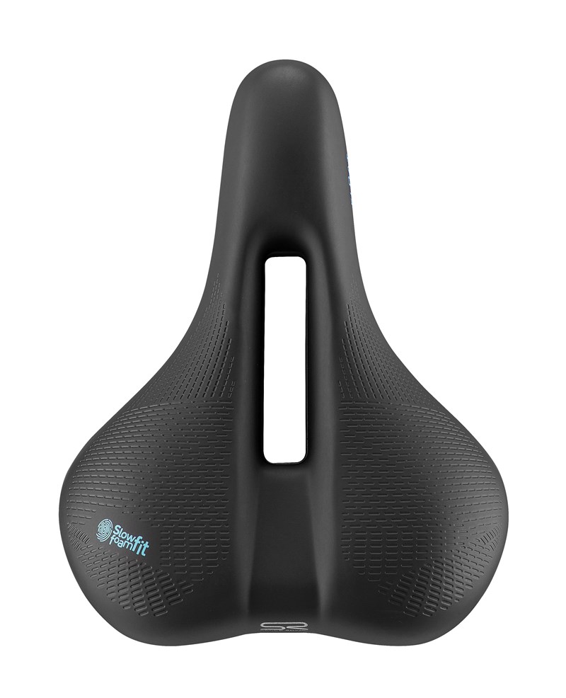 | Description | An anatomic saddle with a central opening designed for greater relief in the perineum area. Slow Fit Foam provides superior comfort by moulding itself to fit the shape of the body's contact points, creating more uniform pressure distribution while maintaining effective support. Integrated elastomers absorb the most severe and unexpected bumps (Moderate and Relaxed models). ICS for easy attachment of Selle Royal saddle bags and accessories. Moderate Women’s: 263x200mm (LxW) ??" 547g |