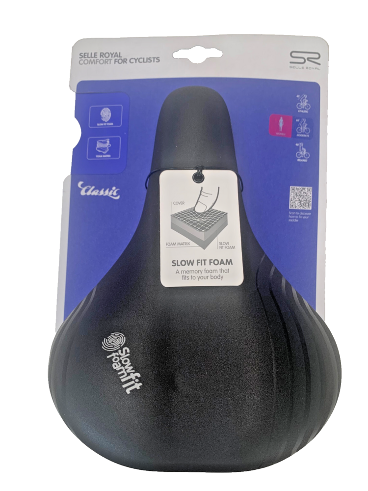 | Description | Roomy Moderate Ladies Ideal for short and easy rides, Slow Fit Foam is an exclusive Selle Royal technology designed to fit the shape of your body. Its memory foam formulation with a slow, bounce-back effect provides immediate comfort and ensures a smooth feeling while riding. Enjoy a dry ride with a water-resistant saddle. This patented Selle Royal technology allows the saddle to be 100% sealed and substantially waterproof, even when exposed to heavy, wet weather. Sometimes older is better: springs add great suspension and a touch of class to any bike. Dimensions: 246 x 181 mm Weight: 580 g Execution: Moderate Model: Ladies Model 8VA8DS0A08069 |
