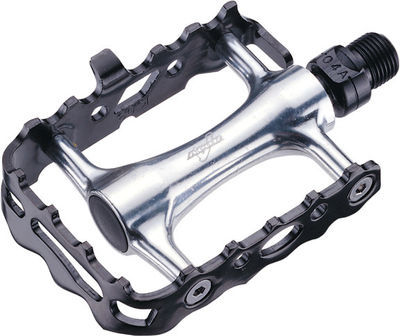 | Description | Modern version of the classic aluminium pedal. Silver alloy body with black steel cage. High-strength Cromoly axle with ball bearings. Serrated pattern top anchors the shoe firmly. Toe clip compatible. Removable dual reflectors for extra safety in low-light conditions. Weight: 249g. |