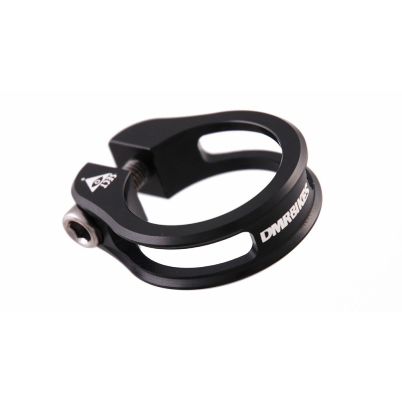 The DMR Sect mtb seat post clamp is a CNC bike clamp with laser etched graphics. We machined windows into the side of the seat clamp to make it as light as possible.