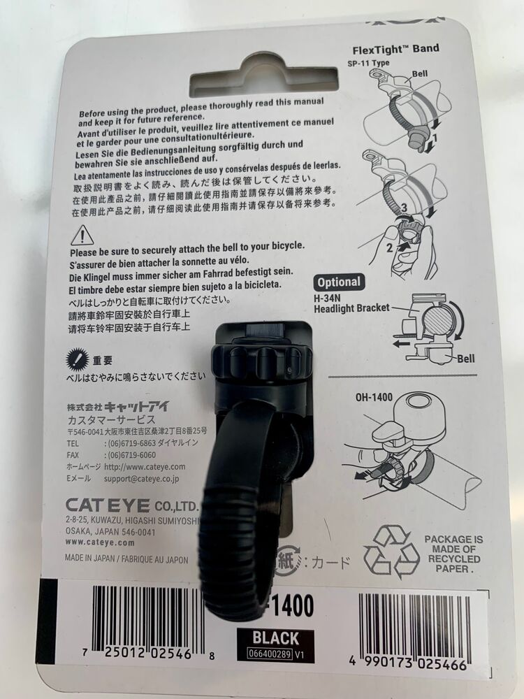 | Description | CATEYE OH-1400 ALUMINIUM BELL Tool free mount attaches quickly to handlebars 19-32 mm. Alminum 30mm diameter bell can also be mounted with a light or computer FlexTightâ„¢ bracket. Tech Specs Colour Black Sound Volume 90.0dB Handlebar size 22-32mm Bell Diameter 33mm Weight 25g |