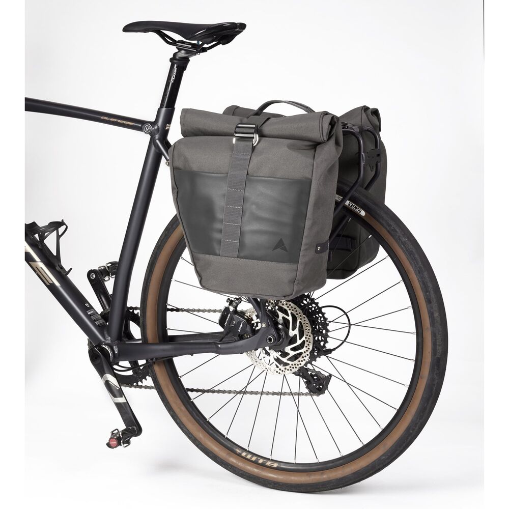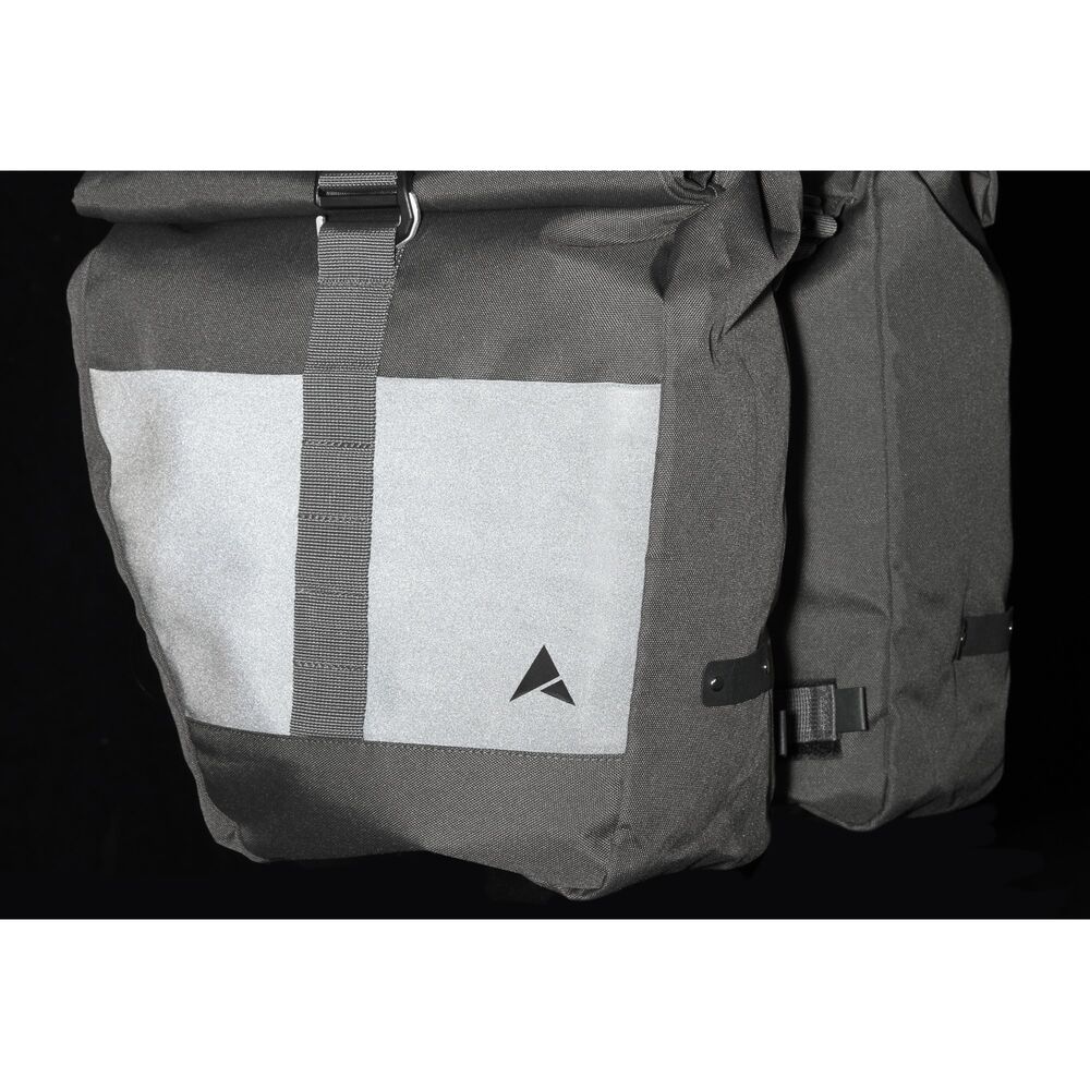 | Description | ALTURA GRID CYCLING PANNIER ROLL UP PAIR A VERSATILE LUGGAGE SOLUTION FOR THE URBAN CYCLIST FEATURES Can be used individually or as a pair Clever roll-up design Roll-top closure Grab handle Reflective details DWR finish Approx 15L capacity each side COMPOSITION 100% polyester |