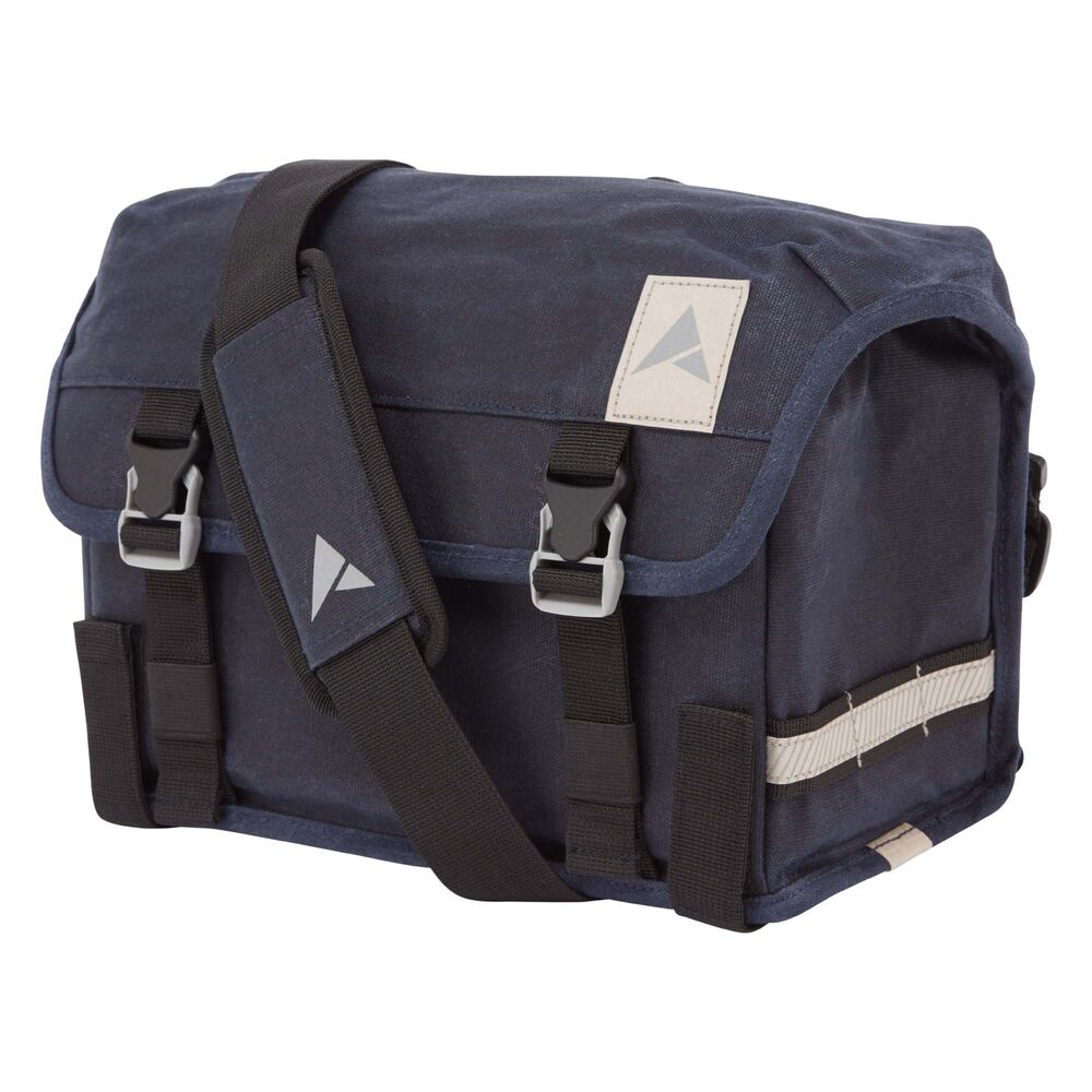 | Description | FEATURES The Altura Heritage Cycling Rack pack mixes a classic look with modern design, crafted from a water-resistant 12oz waxed canvas and securely fixes to most racks with a hook and loop fastening. With a 7L capacity the Rack pack provides great storage for adventures when paired with the Heritage Pannier range but is large enough for the daily commute or touring ride. There is also a handy lid pocket and an internal pocket to keep essentials at hand, while the adjustable shoulder strap quickly turns it into a bag to be used off the bike. Whilst the waxed cotton will protect tools and content from showers and road spray the construction is not waterproof and valuables or electronics should be secured in a dry bag during heavy downpours. 12oz water-resistant waxed canvas Hook & Loop rack fastening Lid closure with Woojin two tone buckles Large zippered lid pocket with key clip and internal pocket Rear zippered pocket Supplied with adjustable shoulder strap Reflective detailing Light loops at each side Approx 7L capacity 97% Cotton / 3% Polyester COMPOSITION Outer: 97% Cotton / 3% Polyester Lining: 100% Polyester |