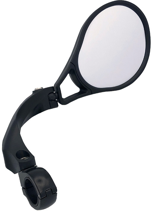 Description Superior quality E13 approved cycle mirror designed to clamp to flat bars with an easy to fit hinged clamp