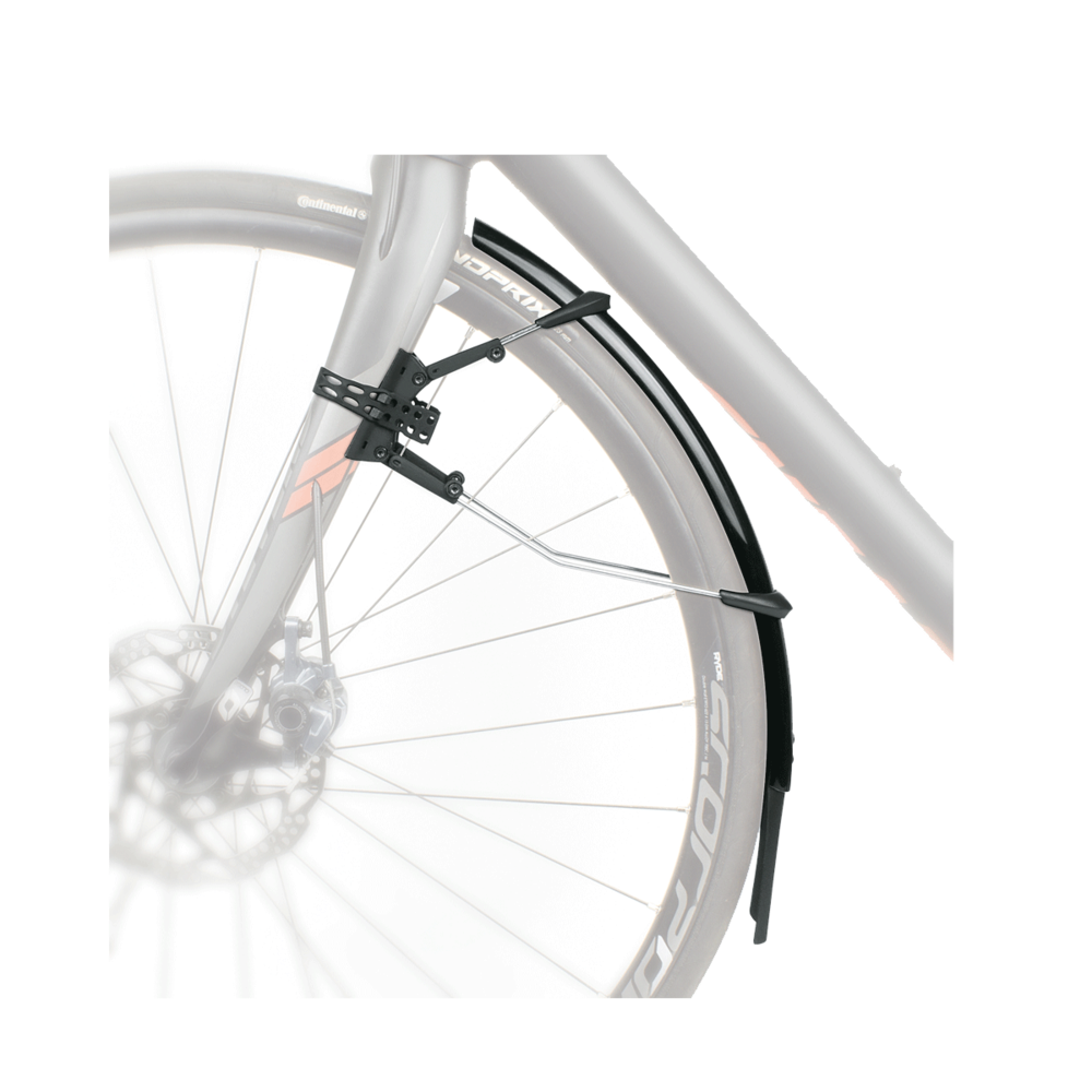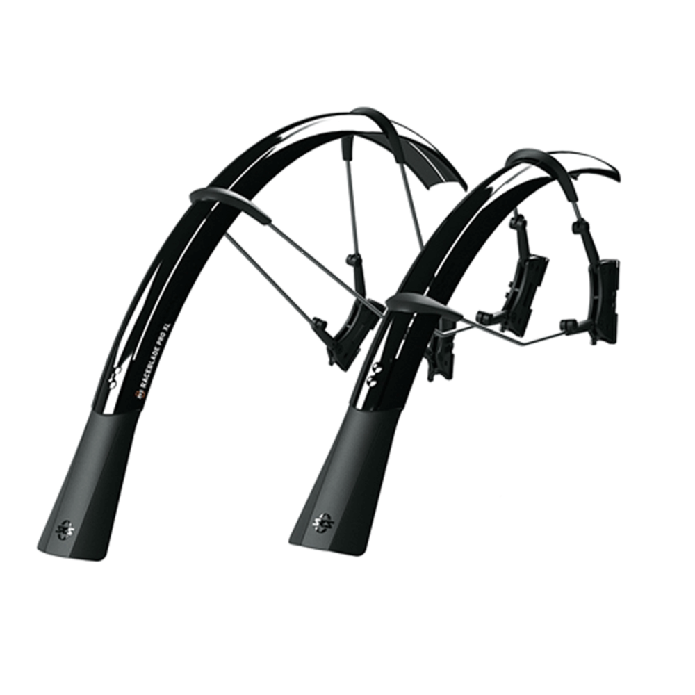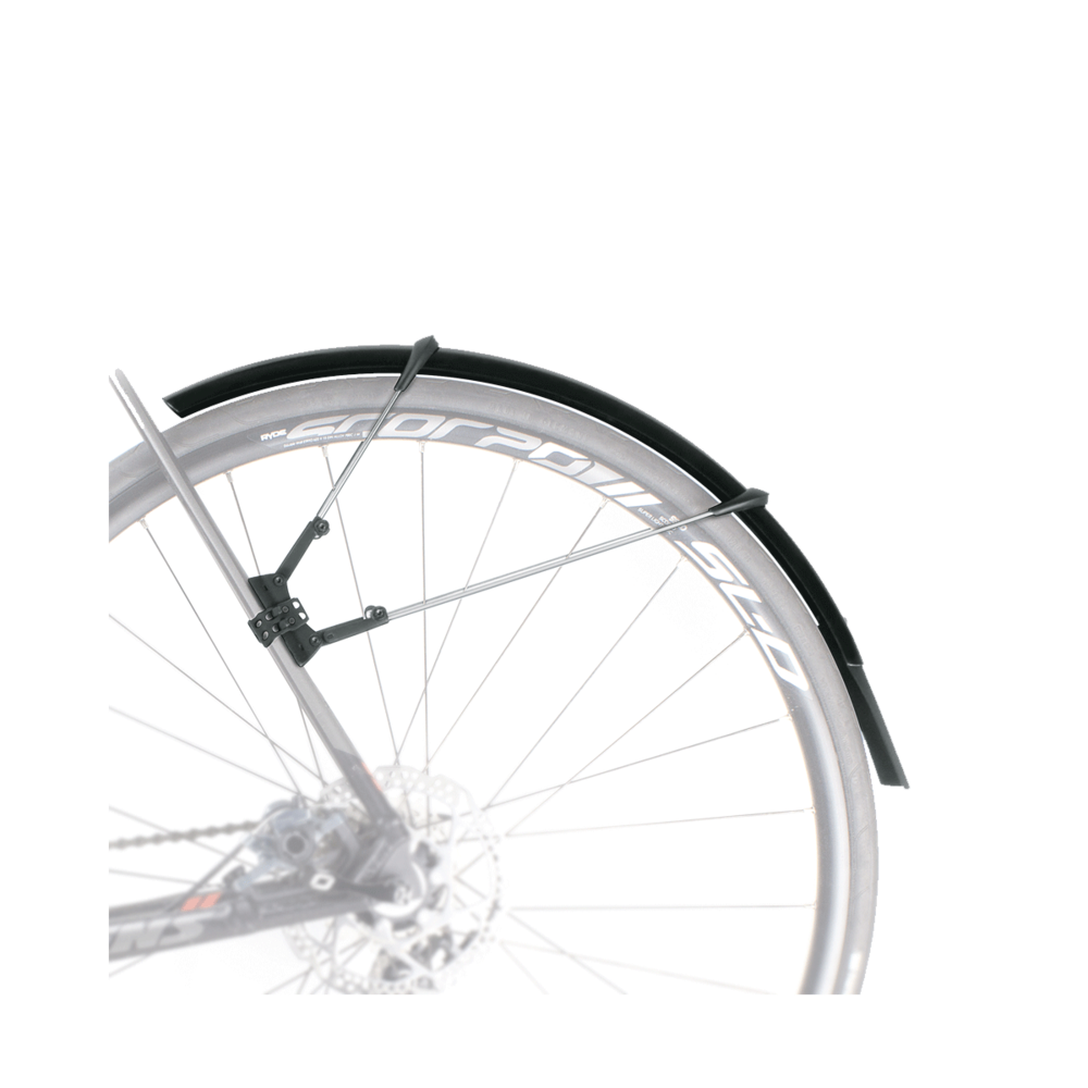 | Description | SKS RACEBLADE PRO XL MUDGUARD SET The ultimate clip-on mudguard set for road and cyclocross bikes for tyre width between 25 and 32mm. It’s smart, double hinged quick release fitting system also fits aero forks and is also compatible with disc brakes, direct mount brakes and thru axles. Mudguards can be perfectly adapted to the radius of the wheel by adjusting the length of the stays. Its superlight extra long mud flaps give additional spray protection. In addition to using the quick release rubber straps it can also be fixed in place with zip ties. Includes adhesive protection kit to avoid damaging the paintwork. * Disc brake compatible: Please be mindful of the brake wire. colour: black weight: 365 g tyre width: 25-32 mm length front fender: 565 mm length rear fender: 730 mm |