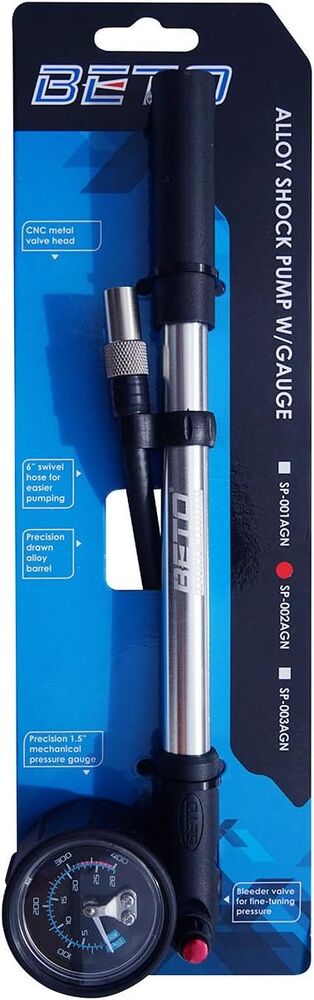 Description Beto Alloy Shock Pump with 1.5" Guage including a Bleed Valve