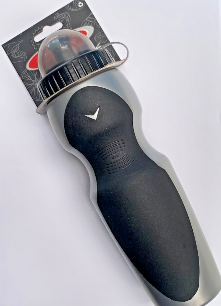 | Description | Premier V-Grip Bike Water Bottle with Drinking Cap Cover Dual Compound Grip 750ml Black / Silver |