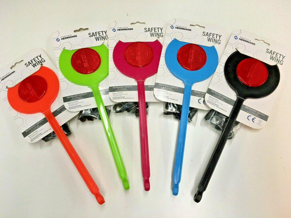 | Description | Herrmans Bicycle Safety Wing Folding Reflector Flag ( Colour Option). The safety wing is one of Herrmans bike reflector innovations from the 1970s that is still in production. The Herrmans Safety Wing Classic lollipop design Increases the safety distance to passing traffic Equipped with E I A reflectors |