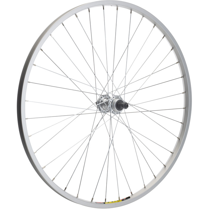 | Description | A high quality, entry level, rear alloy mountain bike wheel suitable for standard mountain bikes Silver alloy hub with hollow, quick release axle runs smoother and lasts longer than steel versions Quick release axle for easy tyre changes, transportation or storage Threaded hub shell allows 5, 6 and 7-speed screw-on freewheels to fitted Silver alloy rim is lighter and more durable than steel and will not rust Galvanized spokes are tough and will resist corrosion Built to a high standard using quality components Quick release lever included |