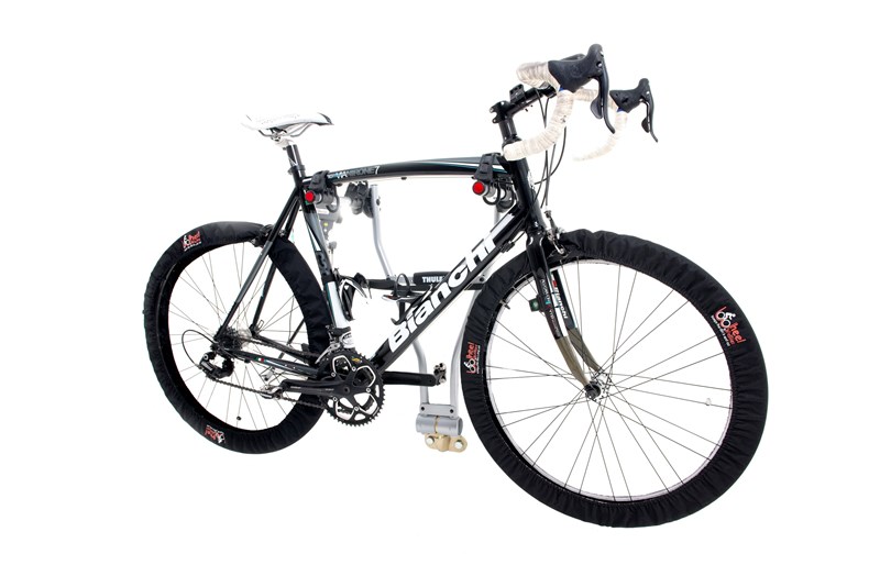 | Description | Keep the dirt in and out with the unique Wheel Wellies. The all new and unrivalled way to safeguard the wheels and tyres on your cycle. A universal cover that fits onto your bike regardless of whether the wheels are on or off the frame. They also provide an efficient way to protect your property and your car, in or out, after the vigours of cycling from the wet, dirt, scuffs and all. Wheel Wellies come packed in a bespoke case that can be used time and time again. Easily cleaned with a warm hand wash, then rolled up and replaced into their case. The versatile wellies are simple to fit, place the end with velcro facing outwards and onto your wheel. If the wheels are on the bike rotate the Wheel Wellie through the bake caliper and wrap the other end round the wheel. Secure the velcro on top and then the two sides. Fits wheels that are either on or off your bike and have a circumference between 1590mm and 2224mm. |
