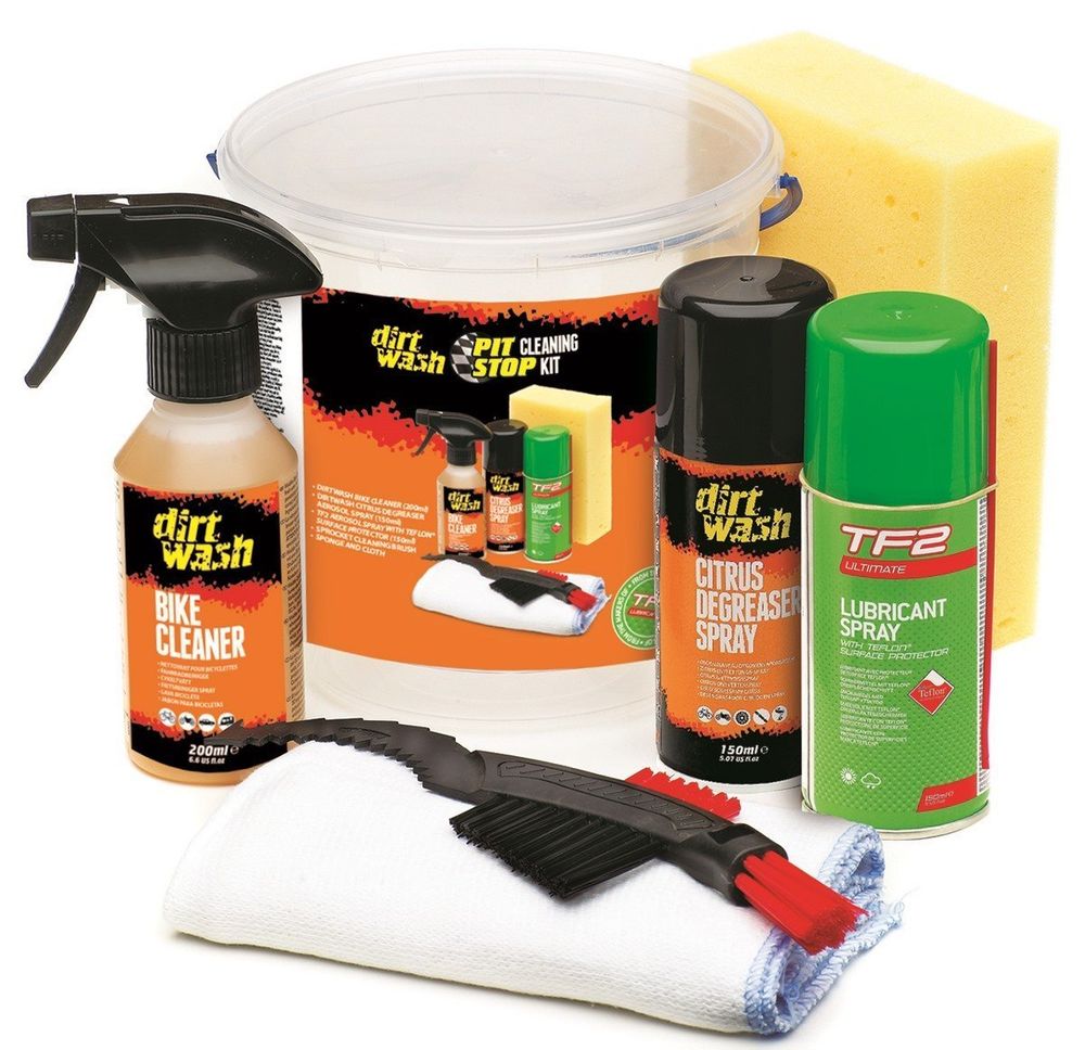 | Description | A 2.3ltr Bucket containing: Dirtwash Bike Cleaner Spray (200ml) Citrus Degreaser Spray (150ml) TF2 Aerosol Spray with Teflon® (150ml) Sprocket Brush Sponge Cloth |
