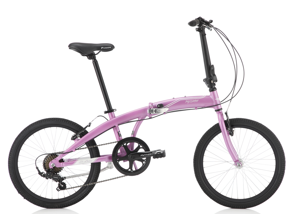 | Description | Alloy Folding Hi-tensile fork Shimano Tourney 7 speed with Shimano SL-TX30 Thumb shifters 3 piece 46T double chain guard with alloy crank Alloy bar and alloy folding stem Promax Alloy V brakes Alloy rims with alloy hubs Python comfort saddle Kickstand Wellgo Folding Pedals Schwalbe Marathon Plus Tyres NB Some marks from use |