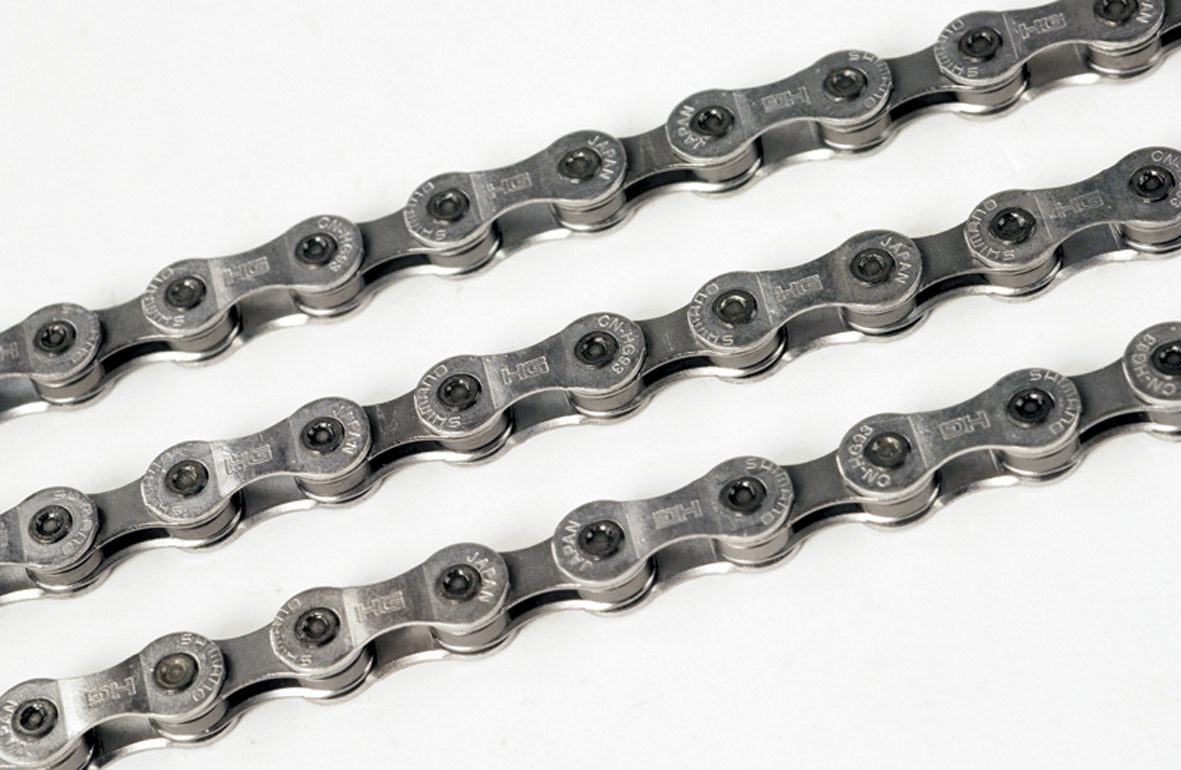 | Description | Hyperglide (HG) series 9-speed compatible chain, recommended for Ultegra, Deore XT, and Nexave C900/C600 drivetrains HG technology has chamfered inner plates to optimise shifting performance on HG sprockets Durability is assured through a chromising treatment on link pins, and the heat treatment of rollers, pins, and plates Mushrooming of the pins gives unsurpassed side-plate retention, enabling the chain to far exceed the BS/ISO standard for breaking force 6.57 mm chain width, optimised for 9-speed Super Narrow HG drivetrains Corrosion-resistant grey finish on inner and outer plates Zinc-alloy silver finish on outer plates, and grey finish on inner plates increase corrosion resistance 116 links, 310 grams |